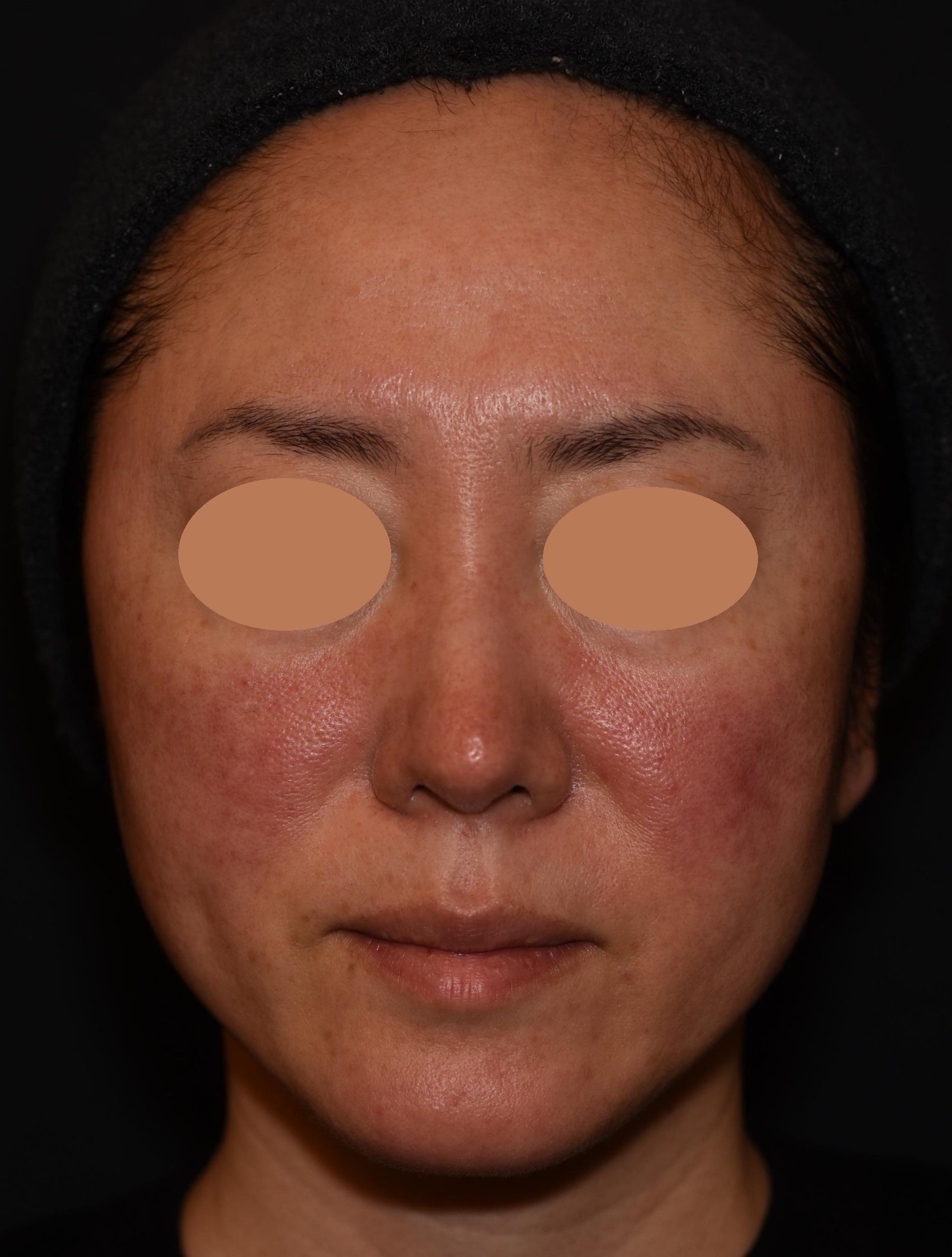 血管専用フィルター(Vascular Treatment Filter)は、赤ら顔の原因であるヘモグロビンに選択的に吸収される波長を照射できるので、拡張された余計な毛細血管を破壊して赤みを徐々に抑えるとことができます。6回の施術で赤みが改善し、肌色が均一になりました。さらに、ハリも出現し毛穴が目立たなくなっています。