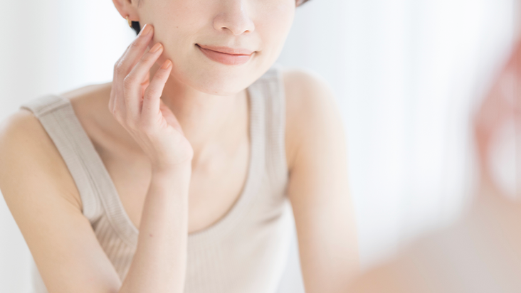 紫外線を浴びると、肌内部の「メラノサイト」が活性化し、メラニン色素が作られます。過剰に作られたメラニンが排出されずに蓄積するとシミやくすみの原因となります。グルタチオンにはメラニンの過剰生成を抑える働きがあり、シミやくすみを防ぎながら透明感のある明るい肌へ導きます。