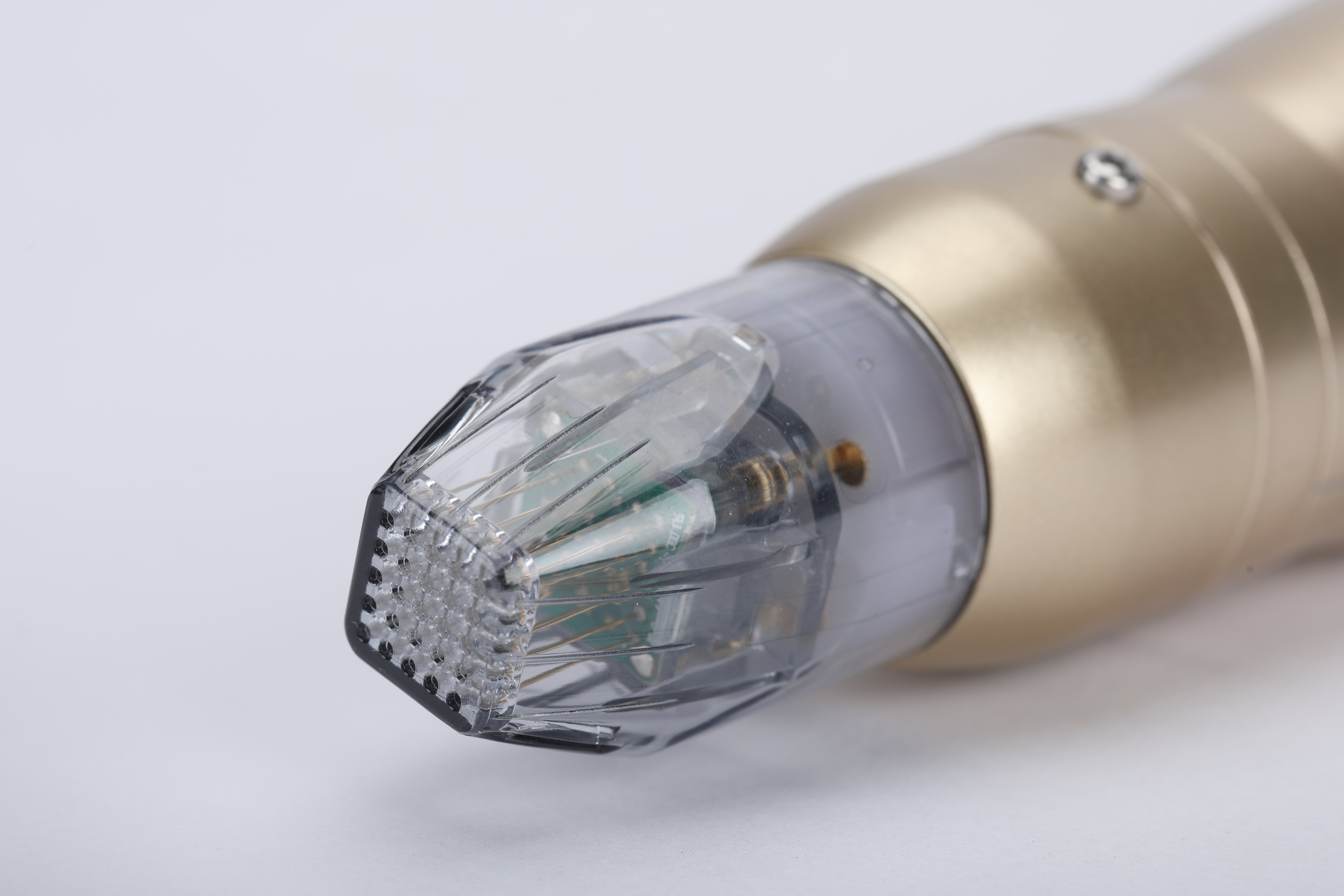 チップの先端にある極細の針は、0.3mm〜4.0mmまで深さを自在に調整できます。浅い層には表皮や毛穴、肝斑などへの治療を、より深い層にはたるみや真皮のリモデリングを目的とした治療を行うなど、それぞれのお悩みに合わせたオーダーメイドの照射が可能です。