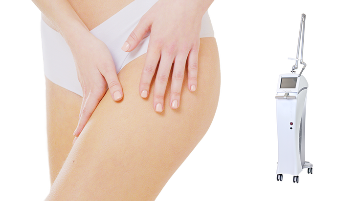 肉割れや妊娠線を完全に消すことは難しいものの、治療によって目立ちにくくすることは可能です。当院では、コラーゲンの産生を活性化させ、肌の再生力を高める治療をご案内しています。主な治療法はレーザーで皮膚を点状に入れ替え、肌の再生を促す『フラクショナルCO2レーザー』や微細な針で皮膚に刺激を与え、創傷治癒力によって肌の再生を高める『ダーマペン4』などになりますが、ダウンタイムを気にせず、高い効果を求める方には、効果の高い『フラクショナルCO2レーザー』が最適と言えます。