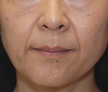 リアクションの大きな人との会話は楽しいですよね?眉を上げ、目を大きく見開く表情は、相手への興味や素直な驚きの現れだからです。このような表情豊かな方は、20代からうっすら額の横ジワが見え始め、徐々に深く刻まれます。加齢や光老化による、皮膚萎縮、脂肪萎縮が加わると、シワを寄せる動きはますます強くなり、シワ感が増してしまいます。額のボリュームロスが目立つ場合は、膨らますタイプ(架橋あり)のヒアルロン酸製材を骨上に注入し、前頭筋の動きを抑制することでシワが目立ちにくくなります。でも、刻みジワには別の手立てが必要です。真皮内のコラーゲンやエラスチンの劣化変性が原因なので、真皮のリモデリングが必須となります。そこで、膨らまさないタイプ(非架橋)のヒアルロン酸製材リデンシティⅠを極浅くに注入していくことで、少しずつ真皮浅層のコラーゲンを再生し、刻みジワをあくまで自然に目立たなくしていきます。58年かけて刻まれた折りジワがほとんど消えて大変喜んでいただきました。