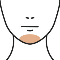 - 口を閉じると、あご先に梅干しのようなシワが出る