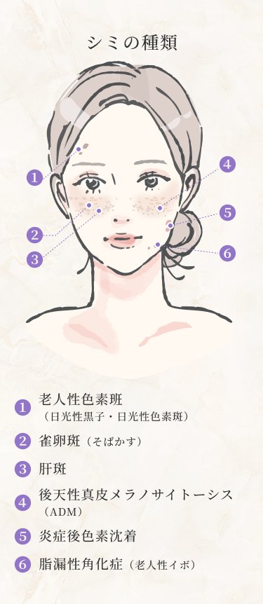 シミには様々な種類があり、それぞれ治療法が異なります。また、加齢とともにできるシミは複数種類が混在していることも多く、治療はより複雑になります。誤った治療は、シミが薄くなるどころか症状を悪化させてしまう恐れがあります。また、ごく稀にシミのように見える色素斑が実際には初期の悪性腫瘍(皮膚がん)の場合があるので、正確な診断と適切な治療法の選択が重要です。